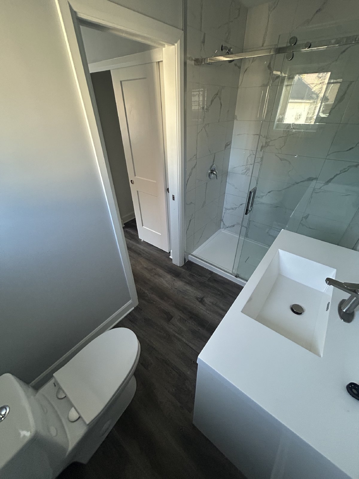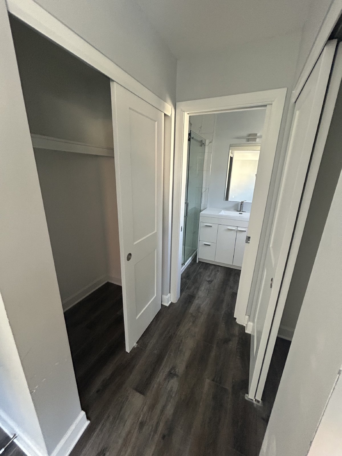 Primary Bedroom with walk through closets and an ensuite full bathroom with a stand up booth shower.