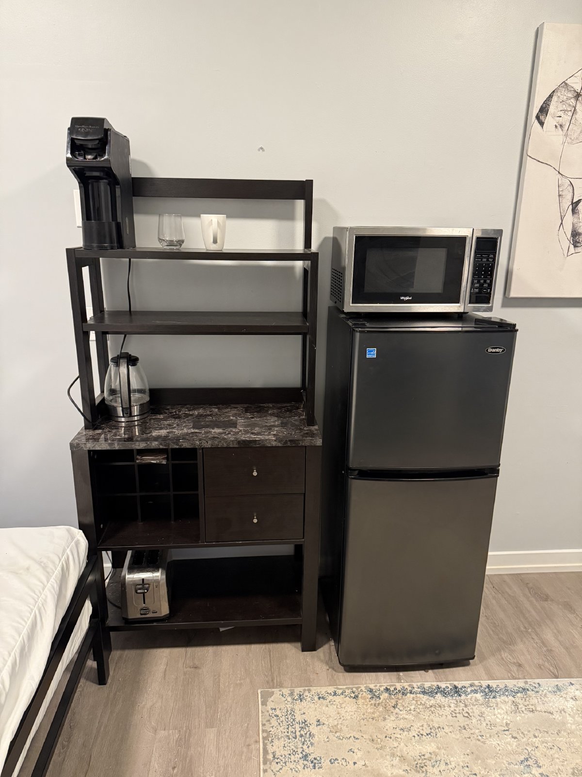 Microwave, toaster, kettle, coffee maker
