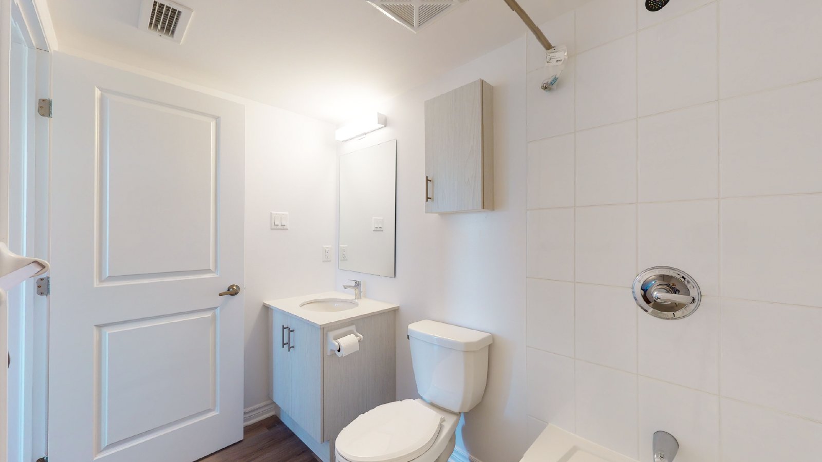 This is a beautiful 2 bed, 2 bathroom is perfect for a couple or family! It features a modern open concept with tons of living space. There is wood flooring and large windows throughout. The balcony is perfect for the summer with an electrical outlet for a BBQ! It comes with 6 appliances (refrigerator, stove, microwave hood, dishwasher, stacked washer and dryer). One generously sized bedroom with walk in closet. There is one parking space is included, tenant is responsible for all utilities (including $110 HVAC rental).
