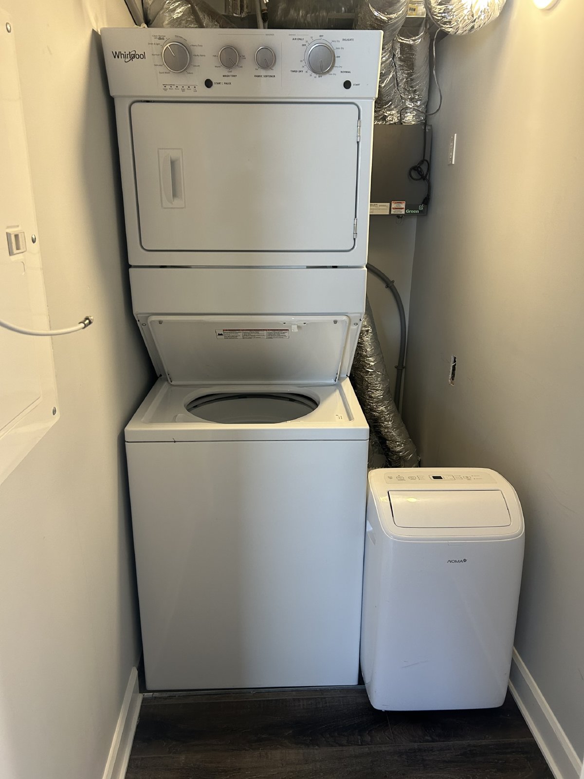 Full bathroom with tub and full laundry in the main hallway.