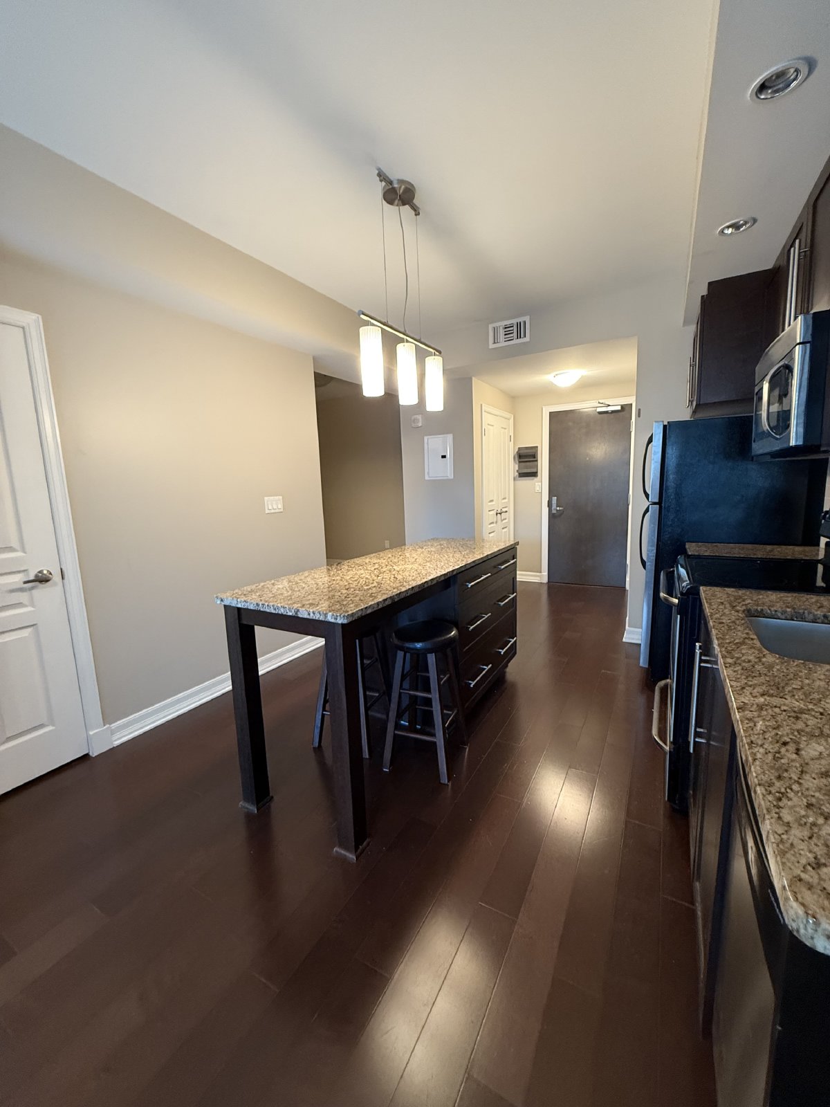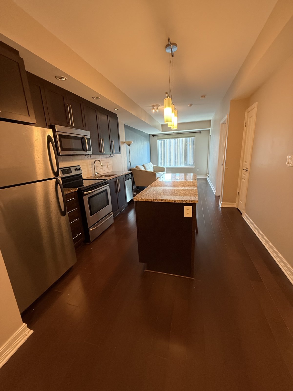 Enjoy an open-concept layout with a spacious living area, a versatile den ideal for a home office or guest space, and a private balcony—perfect for your morning coffee or relaxing after work. The kitchen features modern finishes and ample cabinet space, while large windows bring in an abundance of natural light throughout the unit.