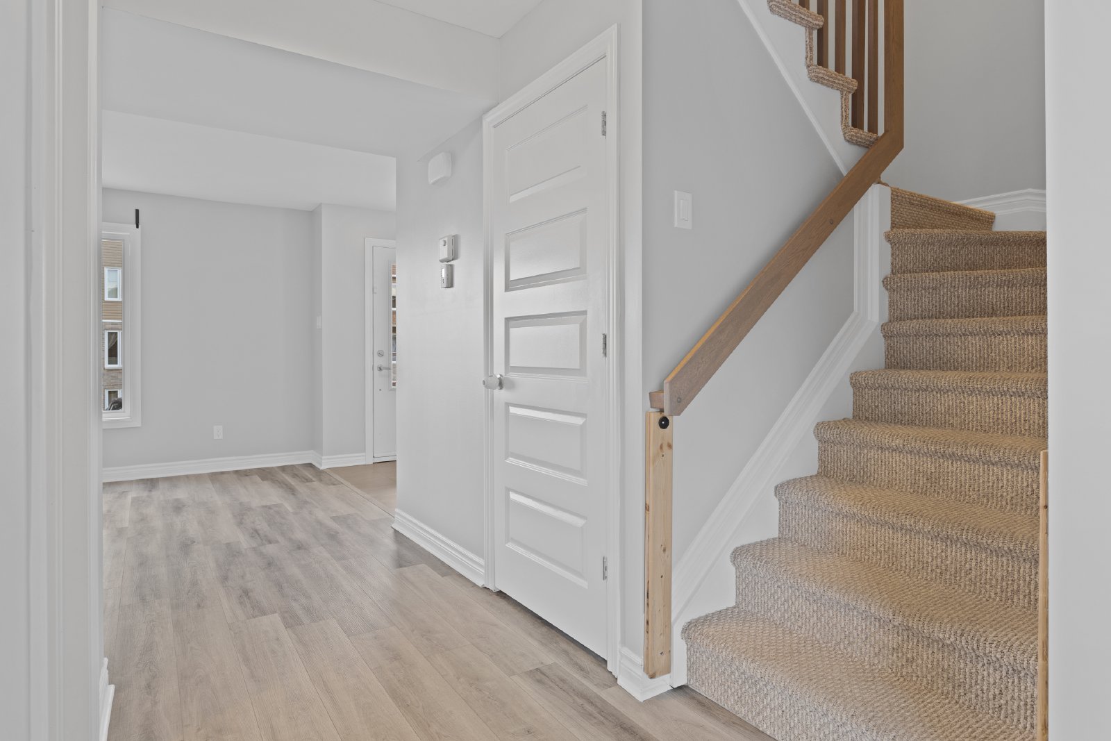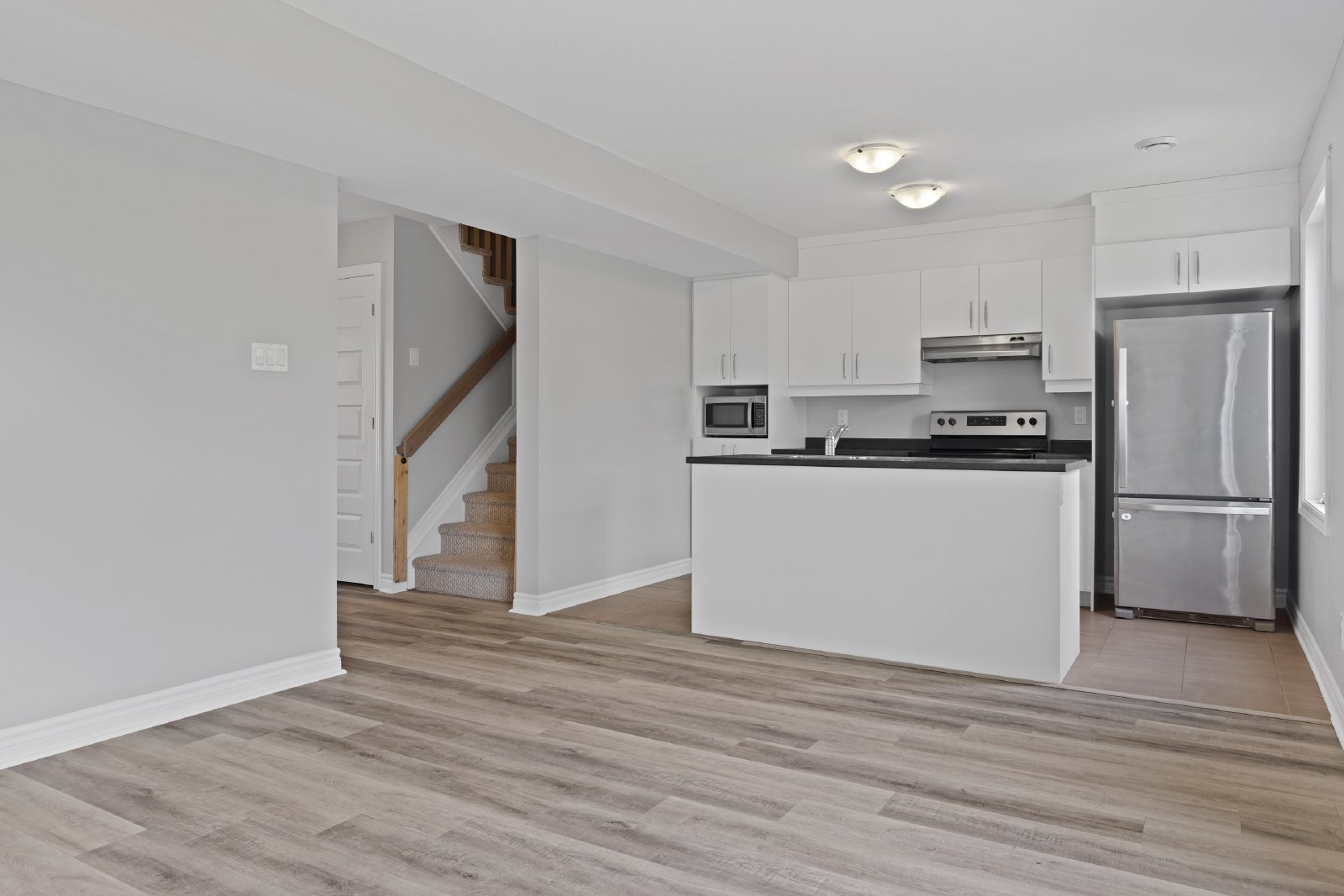 Beautiful LVP flooring throughout (carpet on the stairs), a half bath on the ground floor, and a full bathroom with ensuite laundry. One parking spot is included, 2nd spot can be attained at $100/mth.
