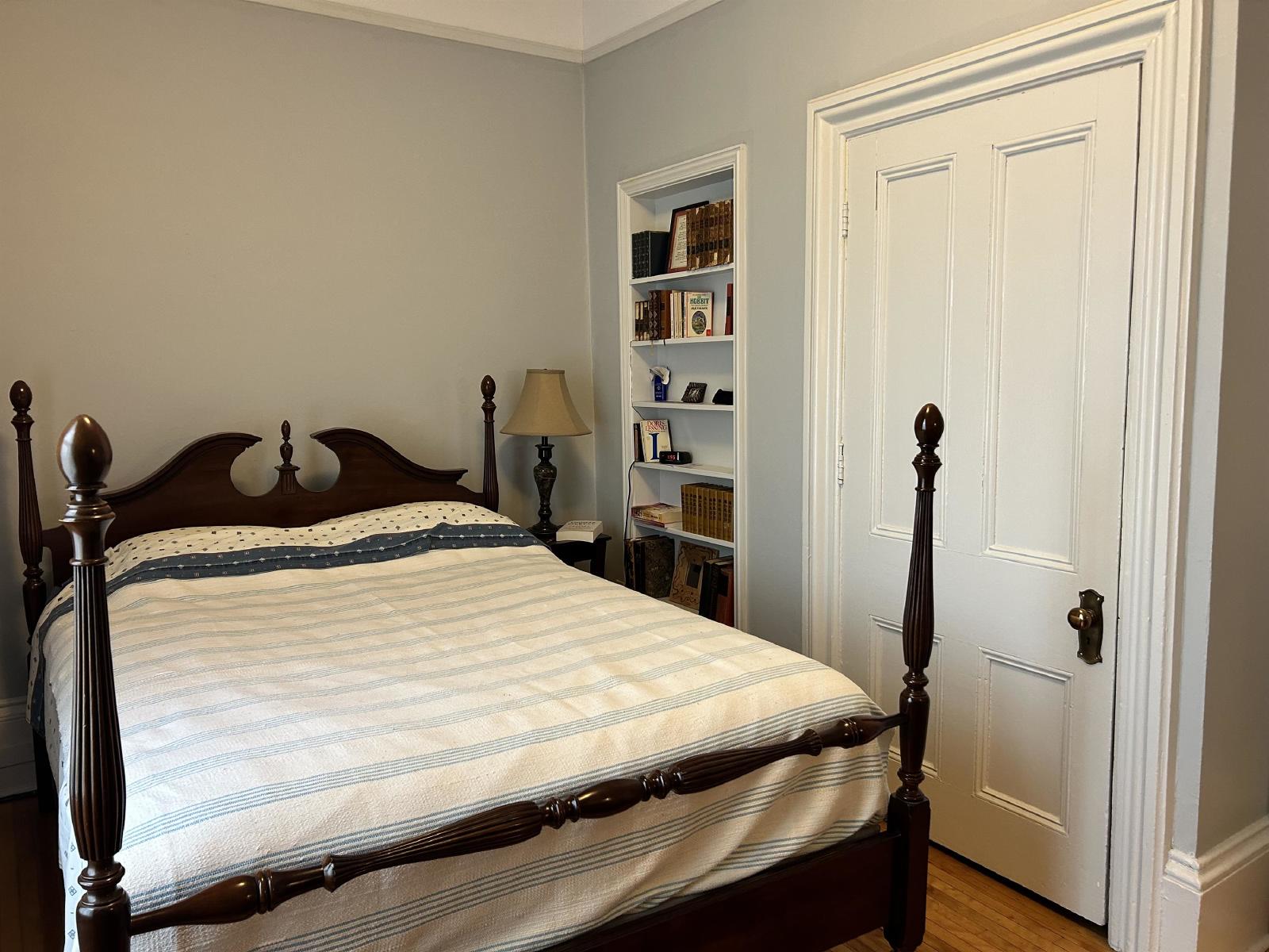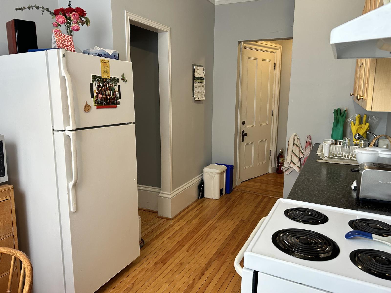 Featuring hardwood floors throughout and large windows in every room, this unit feels bright, warm, and welcoming. The den offers the ideal setup for a home office or creative space, with plenty of sunlight to keep you inspired. The kitchen includes generous storage and a handy pantry, while the bedroom features its own built-in nook—a unique and cozy touch.