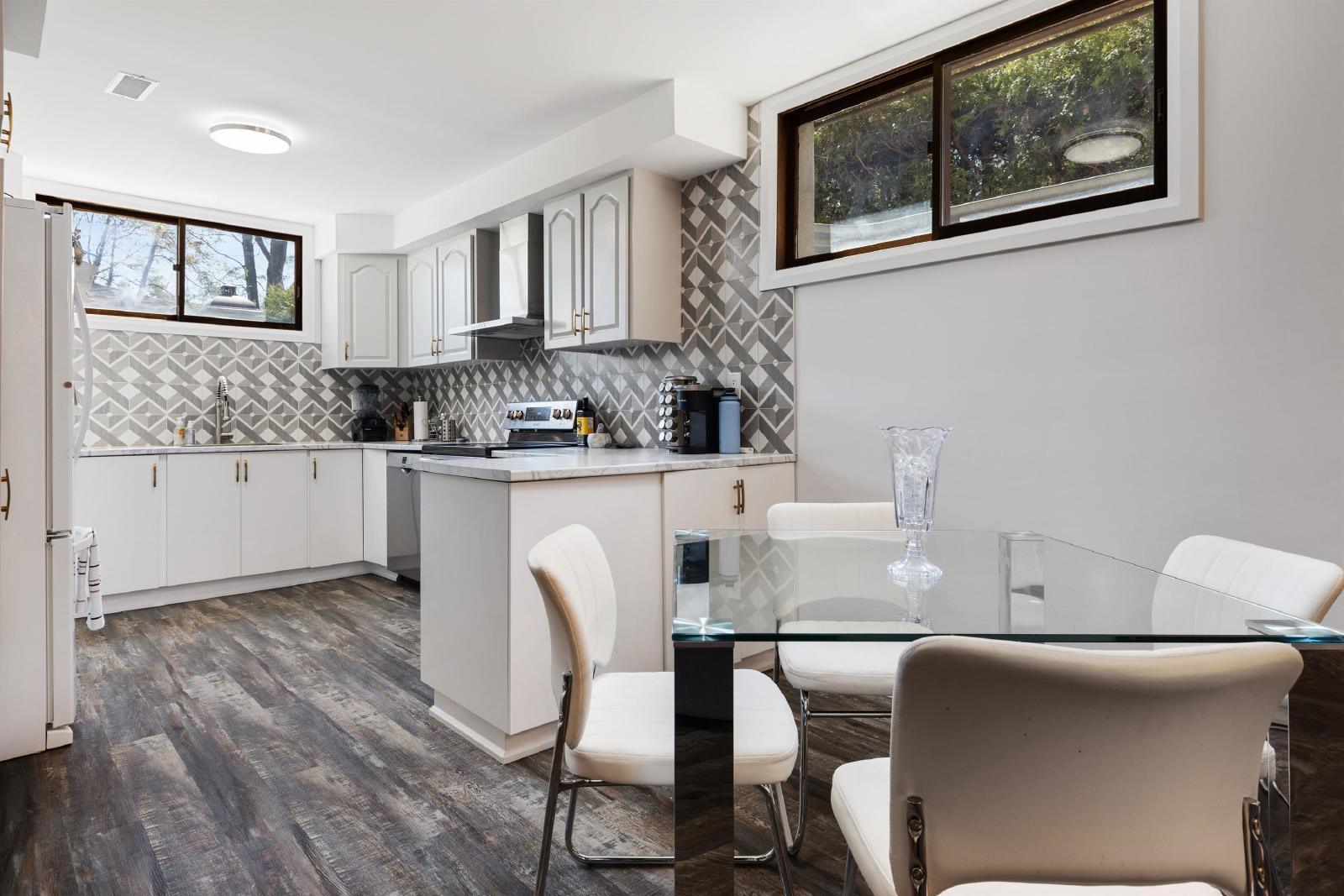 Absolutely georgous, 4 bedroom, 4 Bathroom and TWO kitchen home. The main level offers a beautiful sunroom, a sitting room, a living room with a bar, a renovated with stainless steal applicants kitchen with a breakfast bar and washer and dryer. The basement offers another beautiful renovated kitchen with a living room, dinning room, bathroom and another washer and dryer. The top floor offers 4 large bedrooms, with 3 of them having their own ensuite bathrooms. Beautiful large backyard with patio stones, perfect for an outside dinning area. The backyard also offers a large garage for storage. This unique home is located right on Prince of whales, with a U shaped driverway and a two car garage.