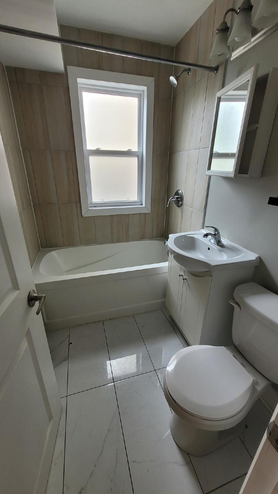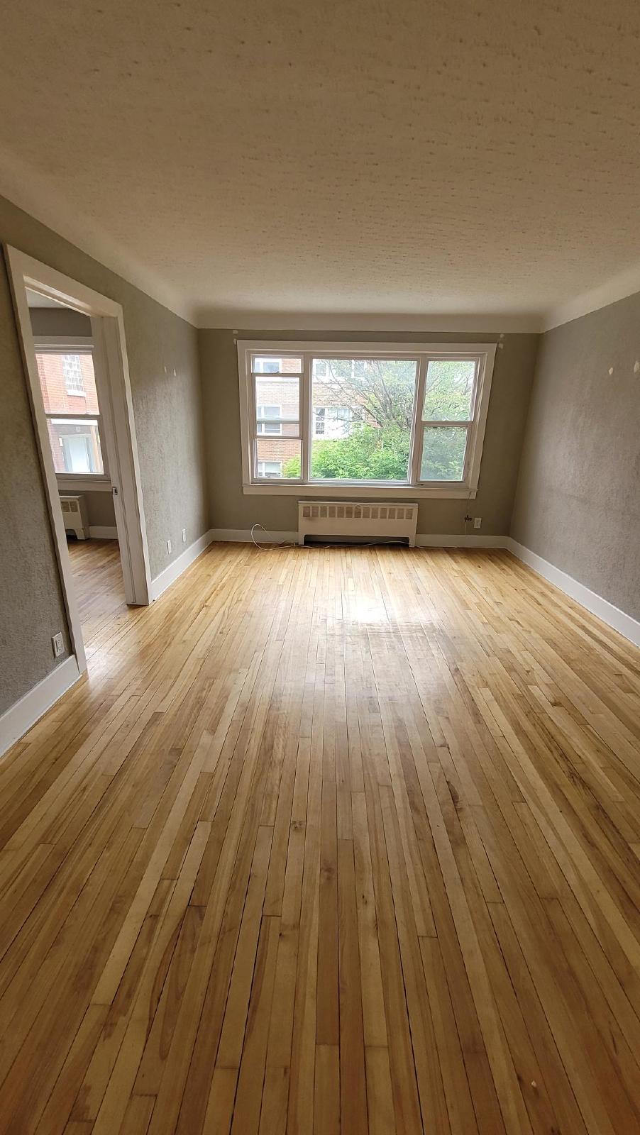 Newly Renovated top floor 2 Bedroom apartment, with hardwood floors throughout! The kitchen is renovated and includes Stove, fridge and dishwasher. The spacious living area has massive windows overlooking the courtyard. The bathroom is also renovated with beautiful porcelain finishes! Both bedrooms are a great size and includes closet space.